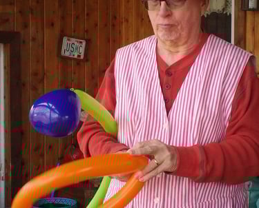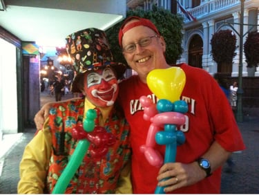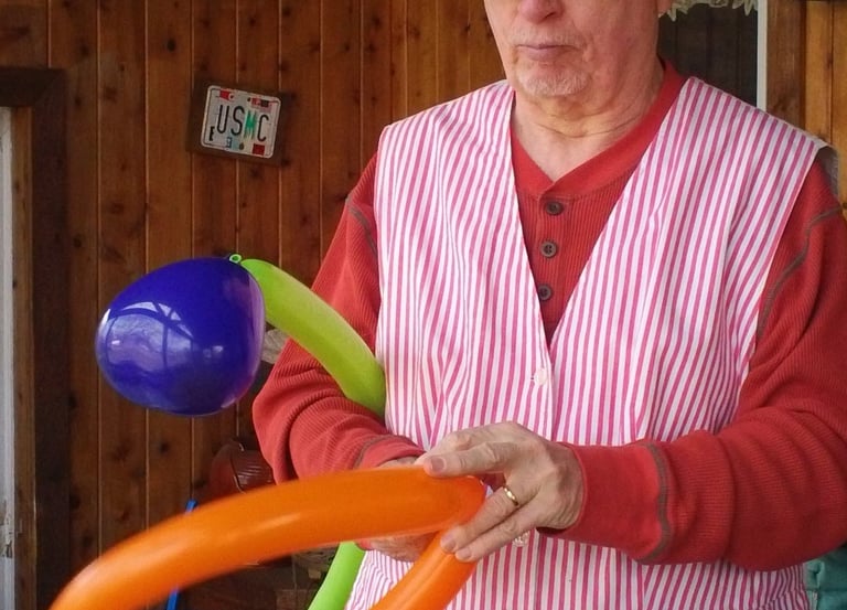 Last but not least, Bob also delivers impromptu balloon twisting lessons at restaurants and festivals.